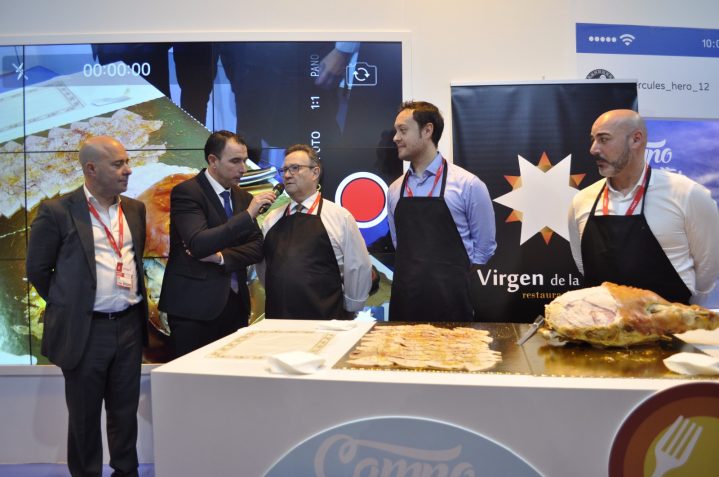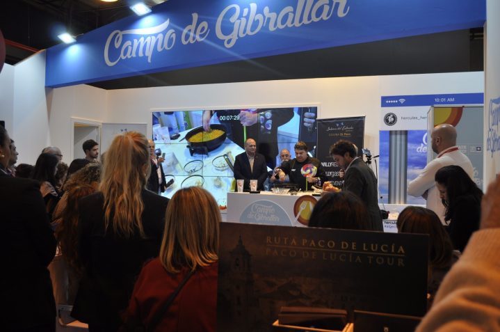 El stand del Campo de Gibraltar en Fitur 2018 ha vivido hoy una jornada muy especial, dedicada en exclusiva a mostrar a los asistentes a esta Feria Internacional de Turismo una muestra de lo mejor de la gastronomía comarcal. Bajo el slogan “El Campo de Gibraltar, para comérselo”, esta fiesta gastronómica ha contado con la participación de varias marcas y establecimientos hosteleros de la comarca, que han sido acompañadas por la vicepresidenta de Turismo de la Mancomunidad del Campo de Gibraltar, Susana Pérez Custodio, y los vicepresidentes Juan Cid, David Gil y Ramón Aranda así como el coordinador de la Administración General del Estado en el Campo de Gibraltar, Ignacio Macías.