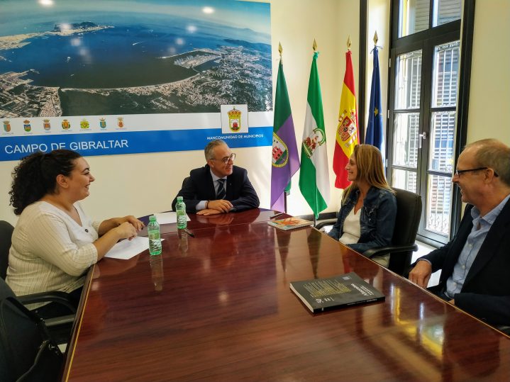 El presidente de la Mancomunidad de Municipios del Campo de Gibraltar, Juan Lozano, se ha reunido hoy con la vicerrectora de la Universidad de Cádiz en el Campo de Gibraltar, María del Mar Cerbán, para comentar las distintas sinergias que se pueden realizar entre ambos organismos para hacer llegar las actividades al mayor número posible de público.