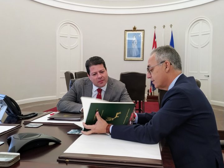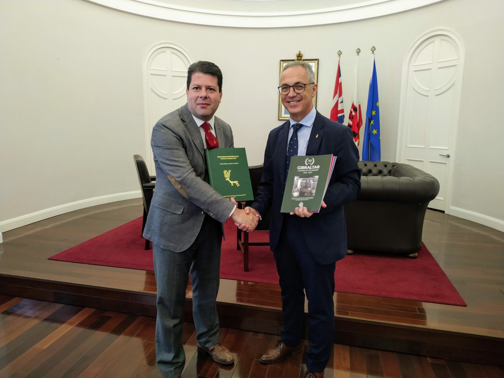 Juan Lozano continúa con su política de diálogo, persiguiendo su objetivo de mantener y fomentar las buenas relaciones de vecindad con Gibraltar en un encuentro en el que ambas partes han estrechado lazos con el intercambio de libros y revistas culturales de la comarca y con la invitación del presidente a la sede de la Mancomunidad en Villa Smith.