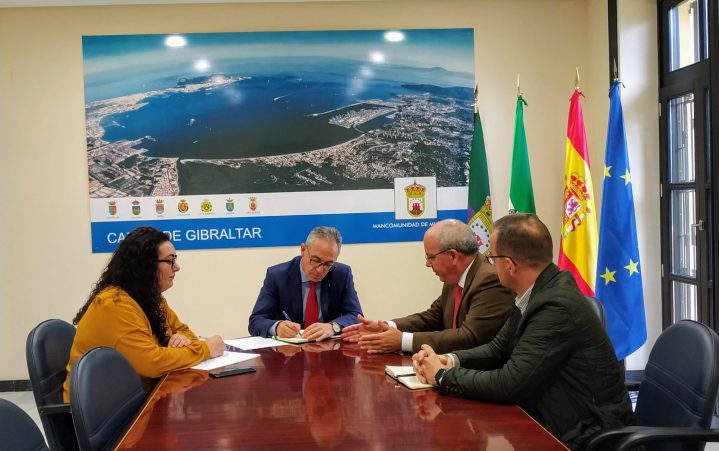 El presidente de la Mancomunidad de Municipios del Campo de Gibraltar, Juan Lozano, se ha reunido con su homólogo de la Confederación de Empresarios de Cádiz, Javier Sánchez Rojas, en un encuentro protagonizado por la búsqueda de sinergias para el fomento del empleo.
