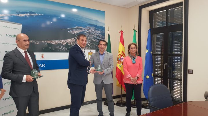 En la mañana de hoy, el Vicepresidente de la Mancomunidad de Municipios del Campo de Gibraltar, Juan Macías, ha procedido a la entrega de los galardones “Iglú Verde” a los Ayuntamientos de La Línea de la Concepción y de Algeciras. Ambos municipios participaron en la iniciativa desarrollada por Ecovidrio durante el periodo estival (del 1 de junio al 31 de agosto) y que, bajo la denominación “Movimiento Banderas Verdes”, busca dar respuesta adecuada a los elevados índices de generación de residuos de envases de vidrio alcanzados durante el verano en la zona del litoral.