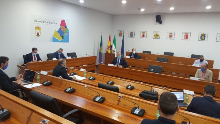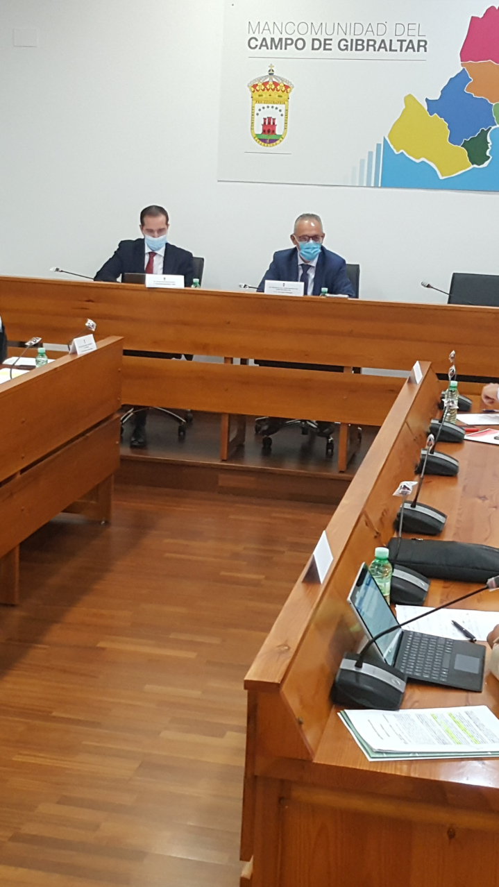 En la mañana del viernes 9 de octubre y bajo la presidencia de Juan Lozano, ha tenido lugar la celebración de una importante sesión del Consejo Comarcal de la Mancomunidad, que ha reunido, en la sede de la Institución comarcal, a los ocho alcaldes campogibraltareños para debatir y realizar una puesta en común de la situación actual y las necesidades del Campo de Gibraltar en tres aspectos de suma importancia, como son la salida del Reino Unido de la Unión Europea (Brexit) y sus consecuencias, junto a la actual situación sanitaria en el Campo de Gibraltar, derivada de la pandemia por COVID-19 y el conjunto de persistentes demandas comarcales sobre el déficit de inversiones de la Junta de Andalucía y del Gobierno Central.