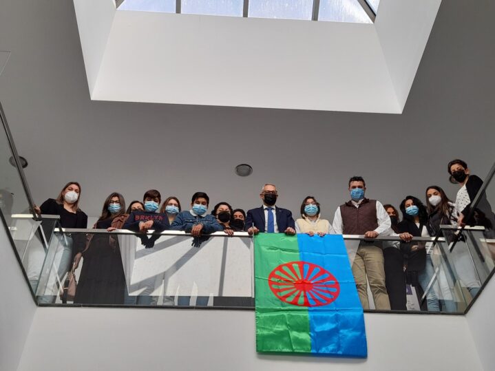 La celebración finalizó con la proyección del video elaborado para la conmemoración y el izado de la bandera azul y verde de la comunidad gitana.