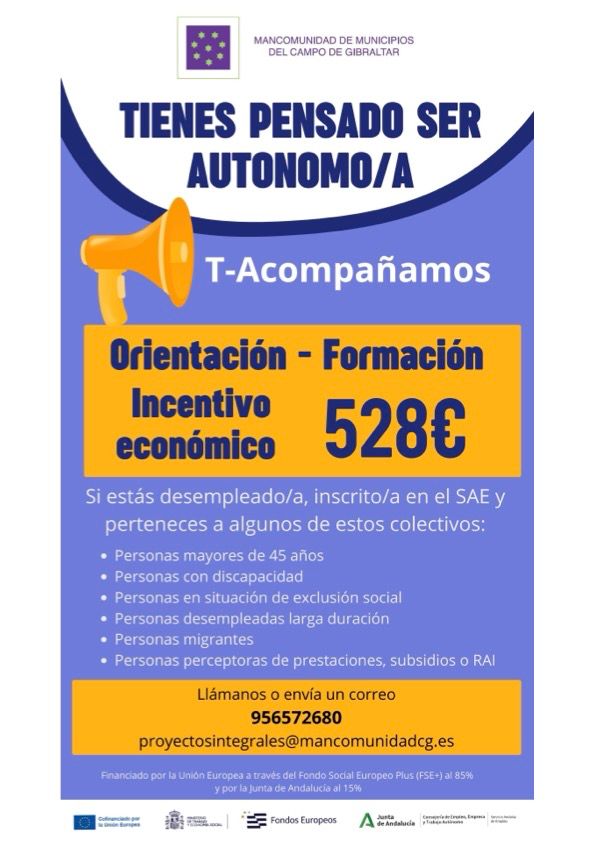 La Mancomunidad de Municipios del Campo de Gibraltar, a través de su área de Empleo y Formación, dirigida por la vicepresidenta María Teresa García León, ha presentado la propuesta del nuevo Programa de Proyectos Integrales para la Inserción laboral “T-Acompañamos” orientada a autónomos y nuevos emprendedores.