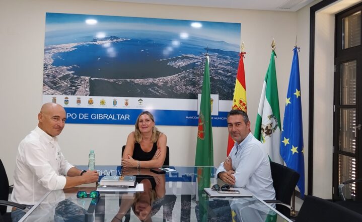 La presidenta de la Mancomunidad de Municipios del Campo de Gibraltar, Susana Pérez Custodio, junto al vicepresidente delegado del área cultural de la Institución, Pablo García Sánchez, han mantenido una reunión de trabajo con el coordinador de publicaciones del IECG y director de la revista Almoraima, Ángel Sáez.