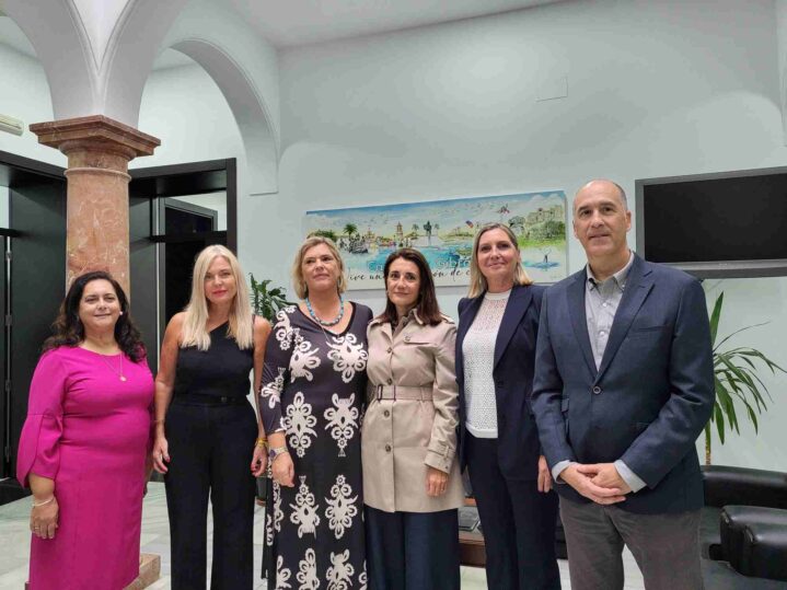 La presidenta de la Mancomunidad de Municipios del Campo de Gibraltar, Susana Pérez Custodio, junto al presidente del Colegio de Farmacéuticos de Cádiz, Alberto Virués Ávila y la responsable del IAM en Cádiz, Blanca Merino, han participado en la reunión de coordinación del proyecto Farmacia, espacio seguro”, iniciativa que busca convertir a las farmacias comunitarias de la provincia en puntos de información y sensibilización ciudadana contra la violencia de género, así como de prevención y detección de posibles casos de maltrato a las mujeres.