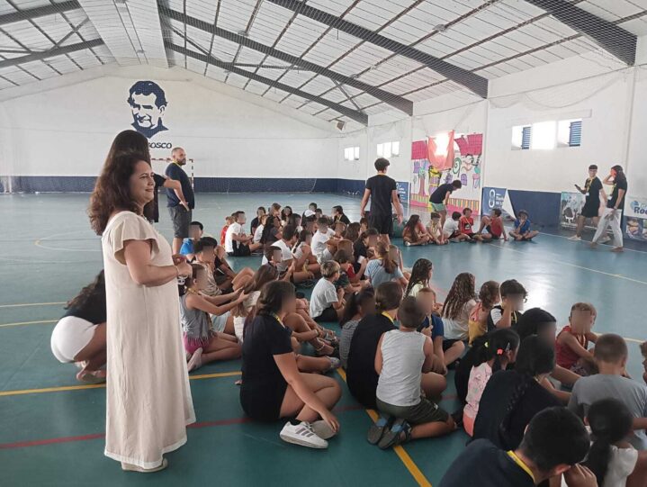 La vicepresidenta García León ha visitado el Centro Educativo “María Auxiliadora” de Algeciras para acompañar al grupo de menores campogibraltareños participantes en el Campamento de Verano organizado por la Comunidad Salesiana de la localidad junto a las Fundaciones Prolibertas y Cruz Blanca y la Mancomunidad de Municipios, a través del Plan Integral para la Inclusión de la Comunidad Gitana de Andalucía (PICGA) en su edición 2025. Durante la visita, García León estuvo acompañada por Francisco Cánovas, religioso salesiano y director de la iniciativa.
