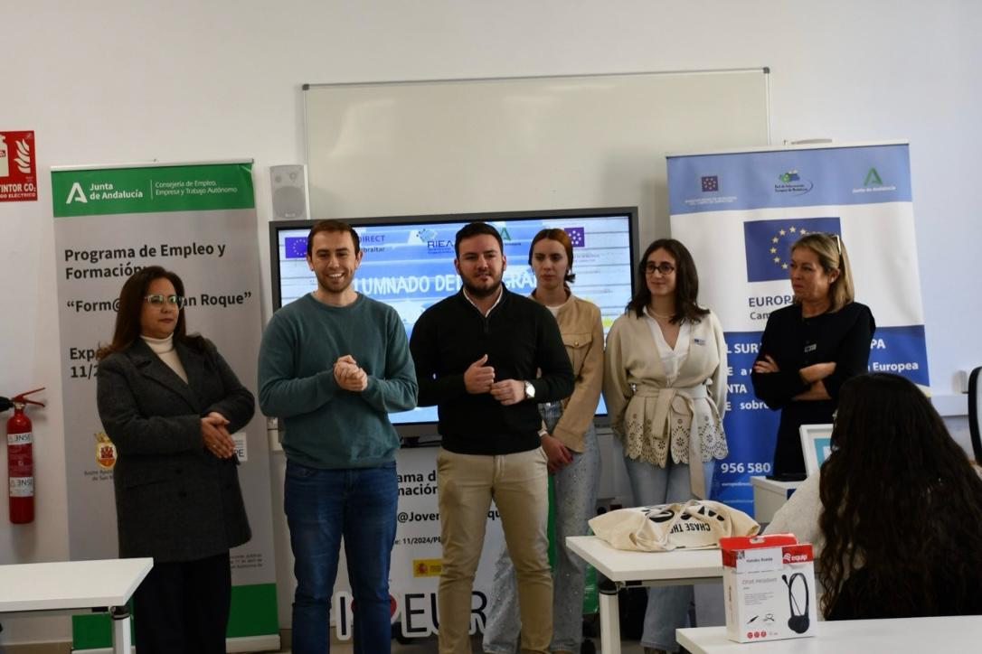 La vicepresidenta María Teresa García León ha participado en la sesión informativa “Europa a tu alcance”, celebrada en San Roque y destinada al alumnado del Programa de Empleo y Formación “Form@Joven San Roque”. En el encuentro también estuvo presente el concejal de Empleo y responsable de Amdel, Fernando Vega.