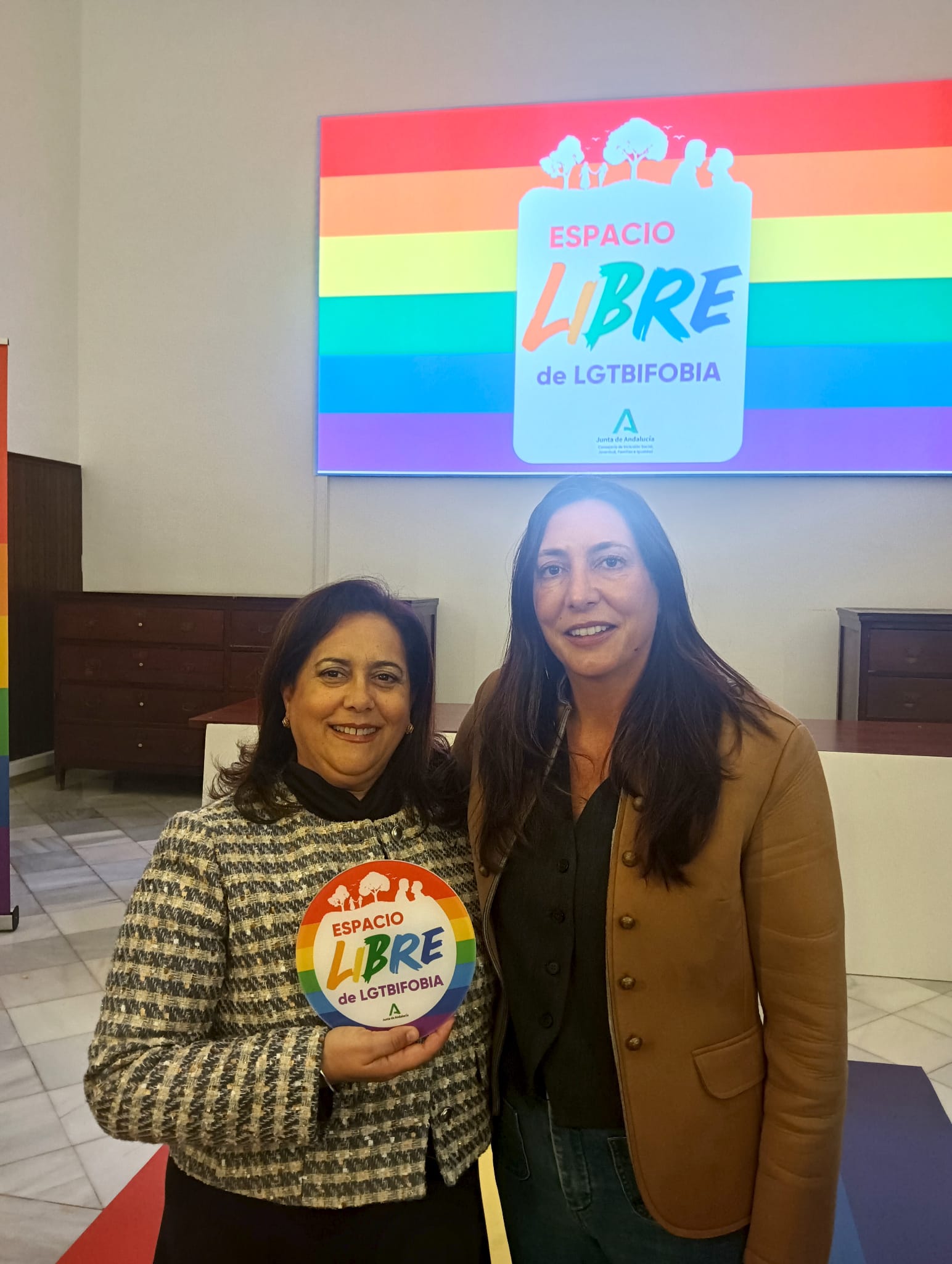 La vicepresidenta de la Mancomunidad de Municipios del Campo de Gibraltar, María Teresa García León, ha recibido el distintivo “Espacio Libre de LGTBIfobia” de manos de la consejera de Inclusión Social, Juventud, Familias e Igualdad de la Junta de Andalucía, Loles López, en un acto que reconoce el compromiso sostenido de la institución comarcal con la defensa de la diversidad y la erradicación de la discriminación por orientación sexual o identidad de género. La distinción, regulada por la Orden de 12 de diciembre de 2025 y su correspondiente convocatoria publicada en el BOJA, acredita a la entidad como un entorno seguro e inclusivo y la sitúa entre las administraciones locales andaluzas de referencia en la promoción de políticas públicas de igualdad real.