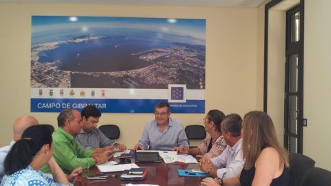 El Presidente de la Mancomunidad de Municipios del Campo de Gibraltar, Luis Ángel Fernández, acompañado de alcaldes del…